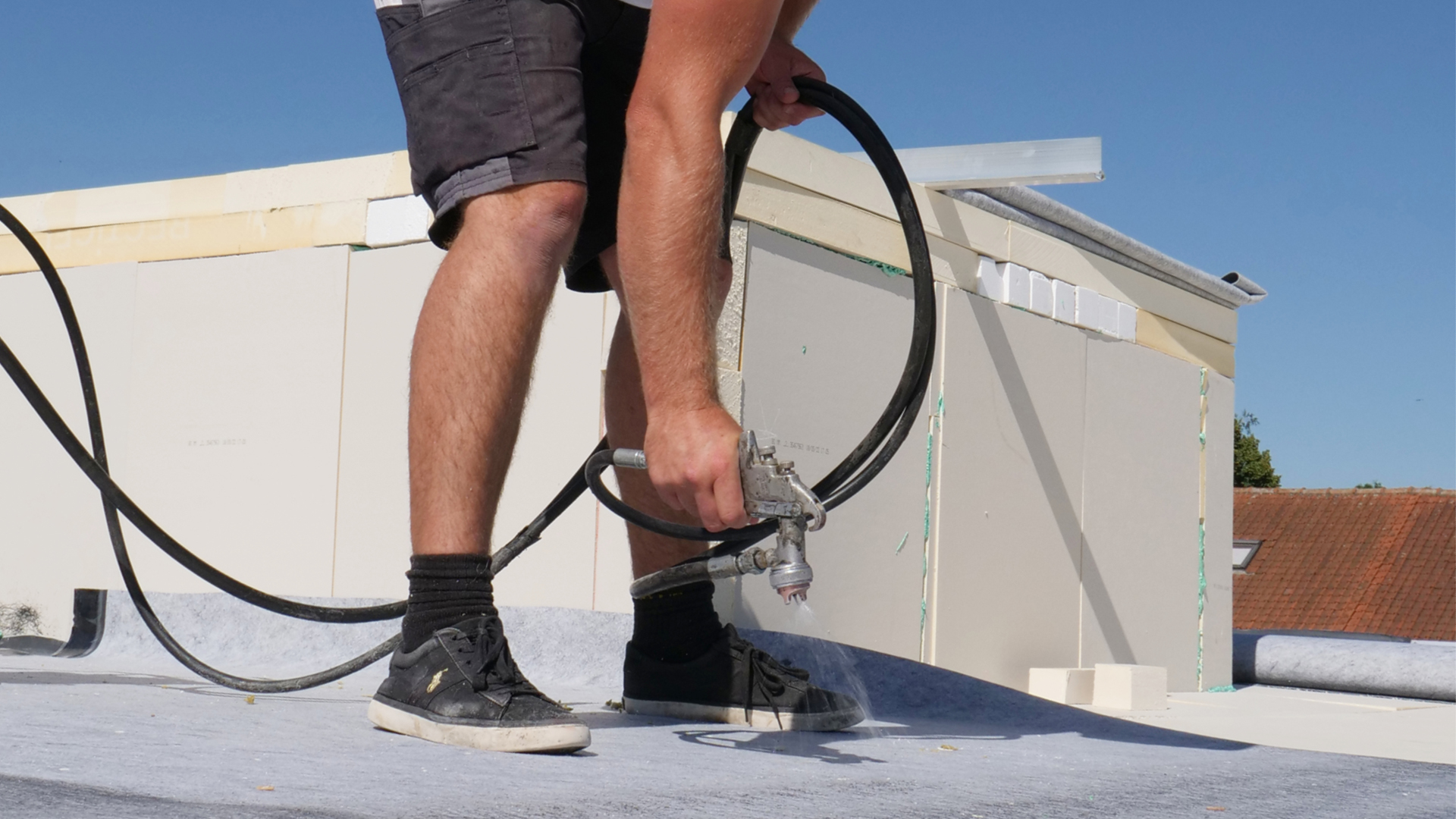 Après avoir installé Mastersystems et réalisé les joints, les finitions commencent. Avec un pistolet à mastic et le caoutchouc liquide Masterkit, vous pouvez réaliser les finitions et sceller complètement les points à risque. Pensez aux joints en T, aux bords du toit, aux finitions des murs et aux évacuations des eaux de pluie.