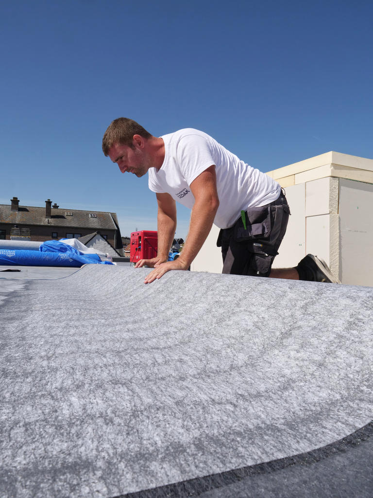 - Voor je het dakvlak verlijmt dient de ondergrond droog, stof- en vetvrij te zijn. Stof en losse delen haal je weg.